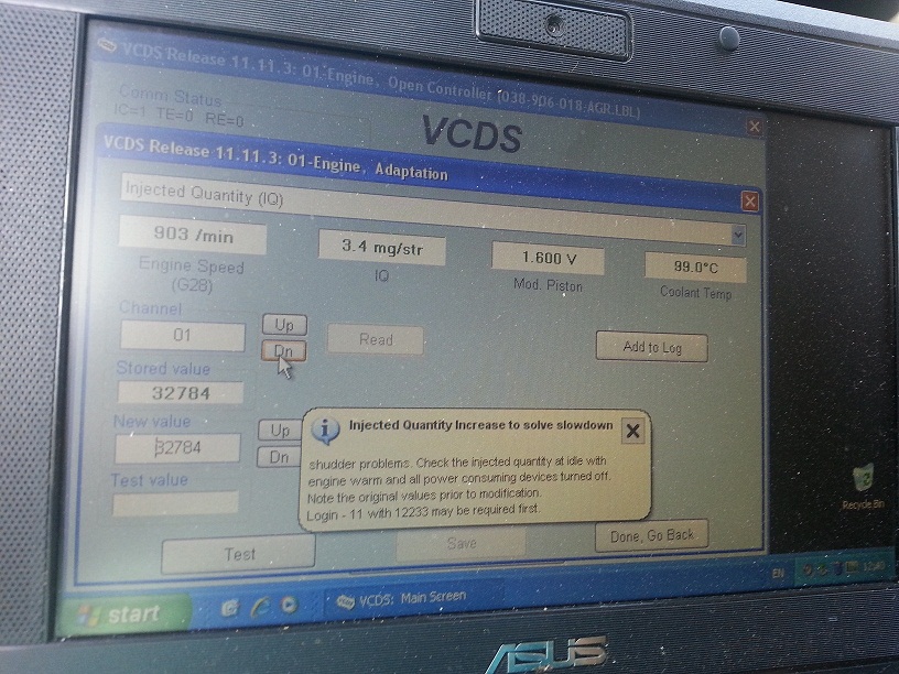 От известно време колата не върви добре, а има сложен чип (по думите на човека който го прави е само да я съживи малко във високите обороти) пробвах с смяна на Клапан N75 и ефект нямаше, почистване на дебитомера имаше малка разлика, но пак си е зле положението, турбината е сваляна преди 2 години за чистене и след това е карана не повече от 20000 километра, като запаля клапана който е на нея се движи и нямам идея какво друго да правя. Ако може някакъв съвет направил съм снимки от Vag-Com-a ако има нещо нередно там някой да каже. Прочетох над 30 теми по този въпроси пробвах доста неща, но ефект няма почти никакъв.