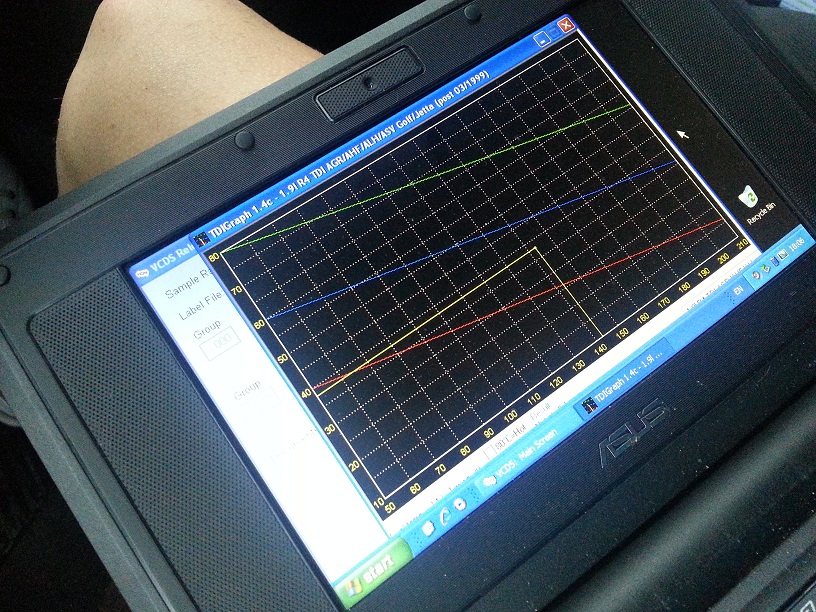 Механично от помпата, не се знае как е и разпределителния вал спрямо коляновия, проверявал ли си белезите? Тази графика трябва да се качи над синята линия с толкова, колкото е сега над червената, но не това е проблема да не върви добре. Трябва да се видят показателите в движение и за предпочитане с оригиналния софт.