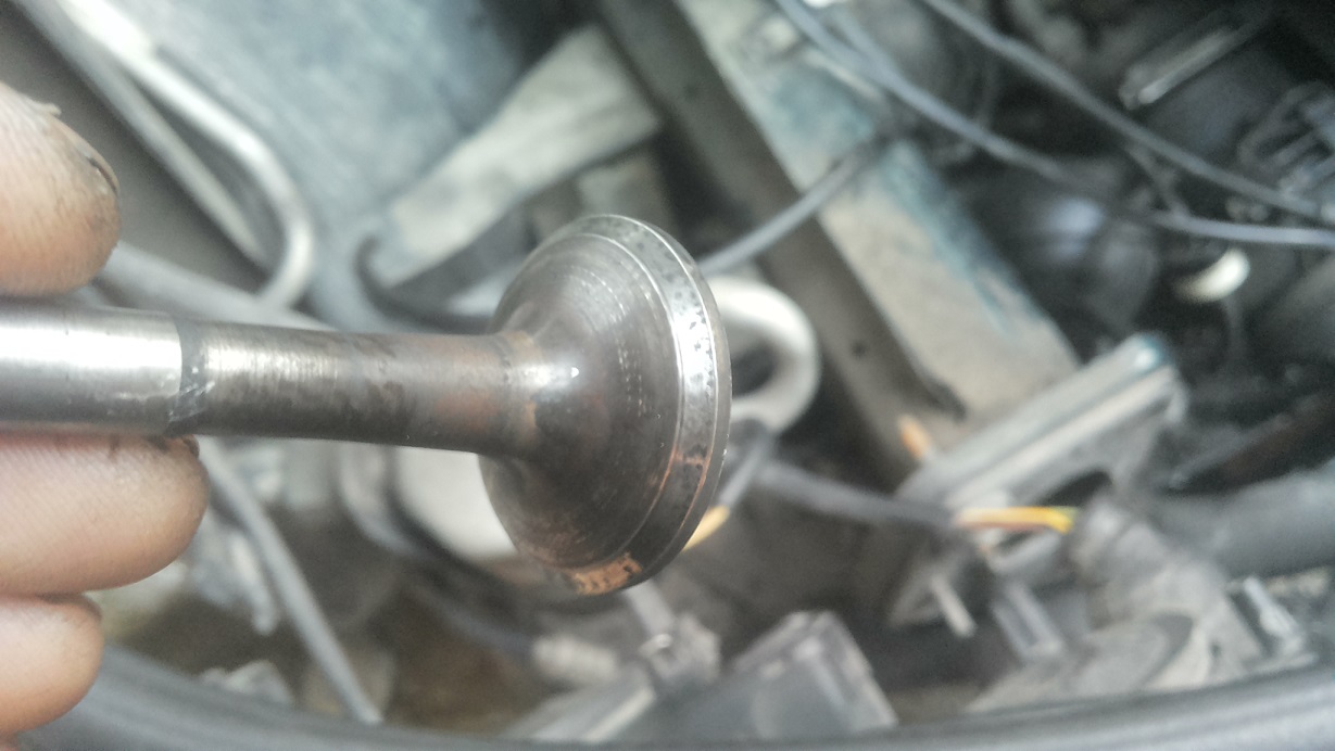 здравейте колеги днес свалих главата за смяна на гарнитурата и обслужване на главата както си му е реда порадди загуба на масло, антифриз и надуване на маркуча,да уточня почти всичко си правя аз с парите хвърлени по "майстори"приклучих и аз имам семейство.Та свалям аз главата без големи проблеми първото което ми направи впечатление беше ударите по буталата и нагара,неравномерното излизане на буталата и големия нагар и луфт по изпускателните клапаните(1-2мм. в посока).Днес шлайфахме главата(о.оо7 нещо такова)в понеделник ще се сложат 8 нови водача и 4 нови изпуск.клапана.