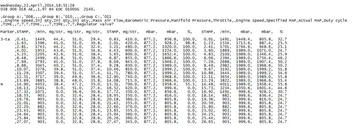 Честит празник :-) ! Имам голф 4 1,9 tdi ALH 90 к.с. и ми заби турбото и записа грешка 17958, та въпроса ми е как да направя лог файла за да видя колко е пренадуването и дали изобщо пренадува. Карам я от около 70 000 км и преди около 30 000 км правих турбина и до момента не е забивала, а забелязъх ,че от известно време почна да пуши доста черно и да има едно замисляне преди да включи турбината. Прегледах доста теми за възможните причини, но искам да направя този лог за да се видят точно стойностите. Имам програмата vcds, но не е регистрирана и дали е възможно да я използвсм? Работя с нея до толкова до колкото да установя грешка и да я изтрия и оправя повредата.