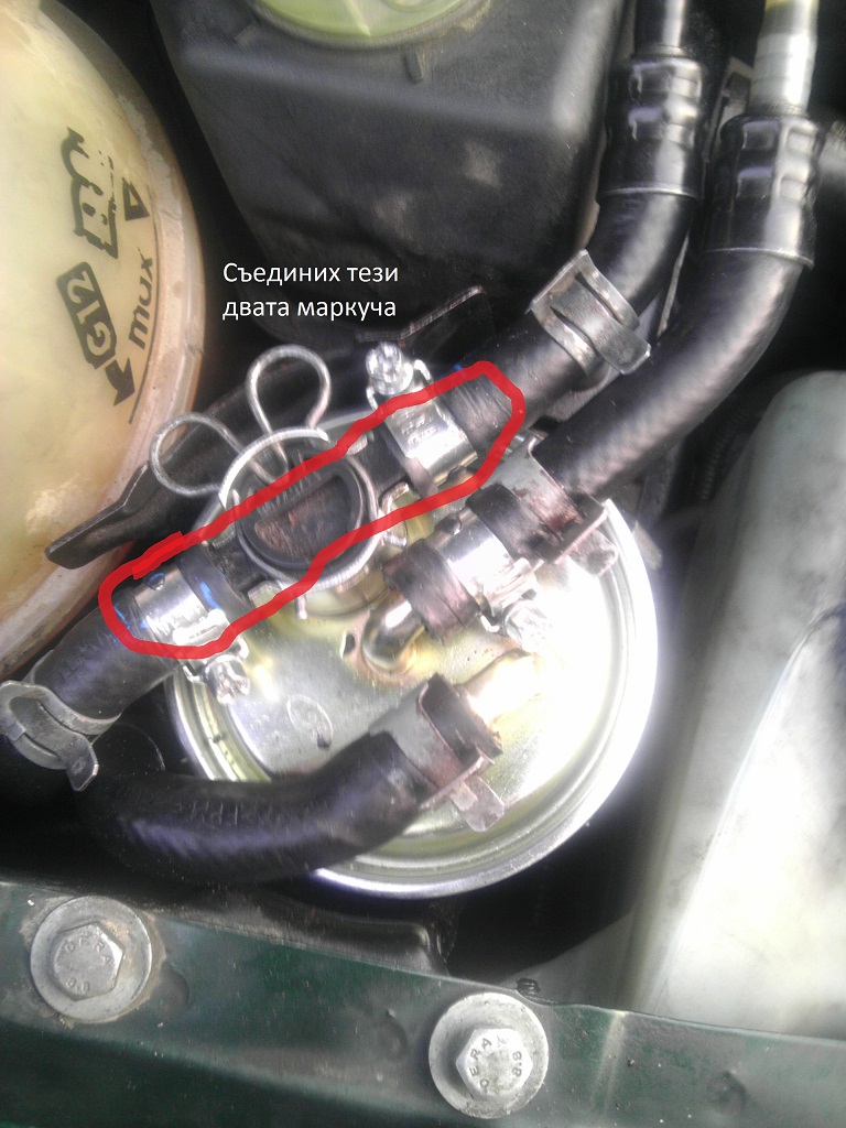 Затова когато се съединяват тези маркучи се взема филтър от Голф 2 който е само с 2те тръбички.