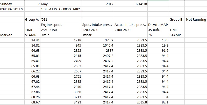 При студена кола вървеше адекватно за известно време, но като загрее нямаше мощност до 3 хиляди оборота и actual intake pressure забиваше на над 2900 дори на празен ход.