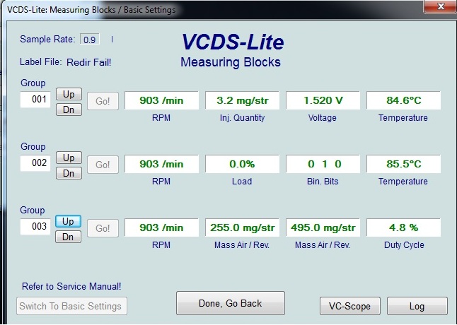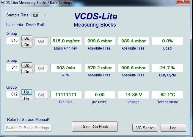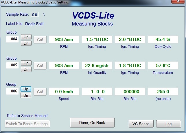 Направи скрийншотове на показанията на vcds включително и на графиката за центровката!