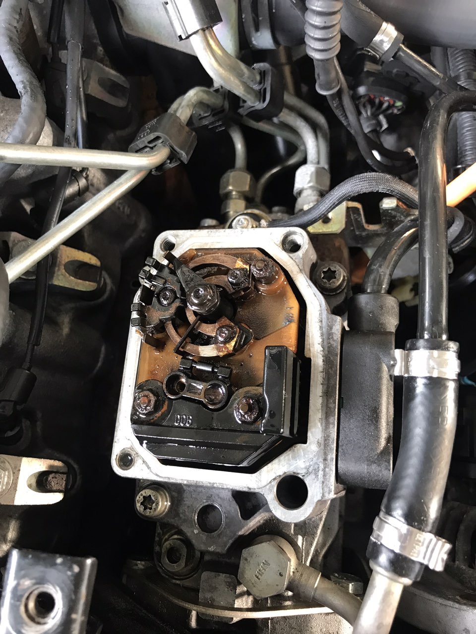 Не е имало вода в горивото , просто тази помпа е стояла разкачена камара време без нафта ( или с много малко ) на открито или в неподходящо помещение.