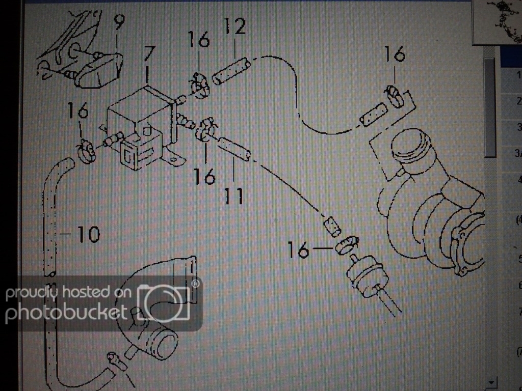абе незнам да се радвам ли ама май не е това схемата щото освен тоя тройния клапан при мен ги има и другите три да не ги изброявам сега знаете ги. и надолу към турбината отиват два маркуча, не съм гледал къде влизат. почнах да ровя тая работа щото чак сега след две години каране забелязах че клапана който затвяря егр не включен към вакумния мъркуч просто щуцера на клапана счупен. чакам доставка със нов.