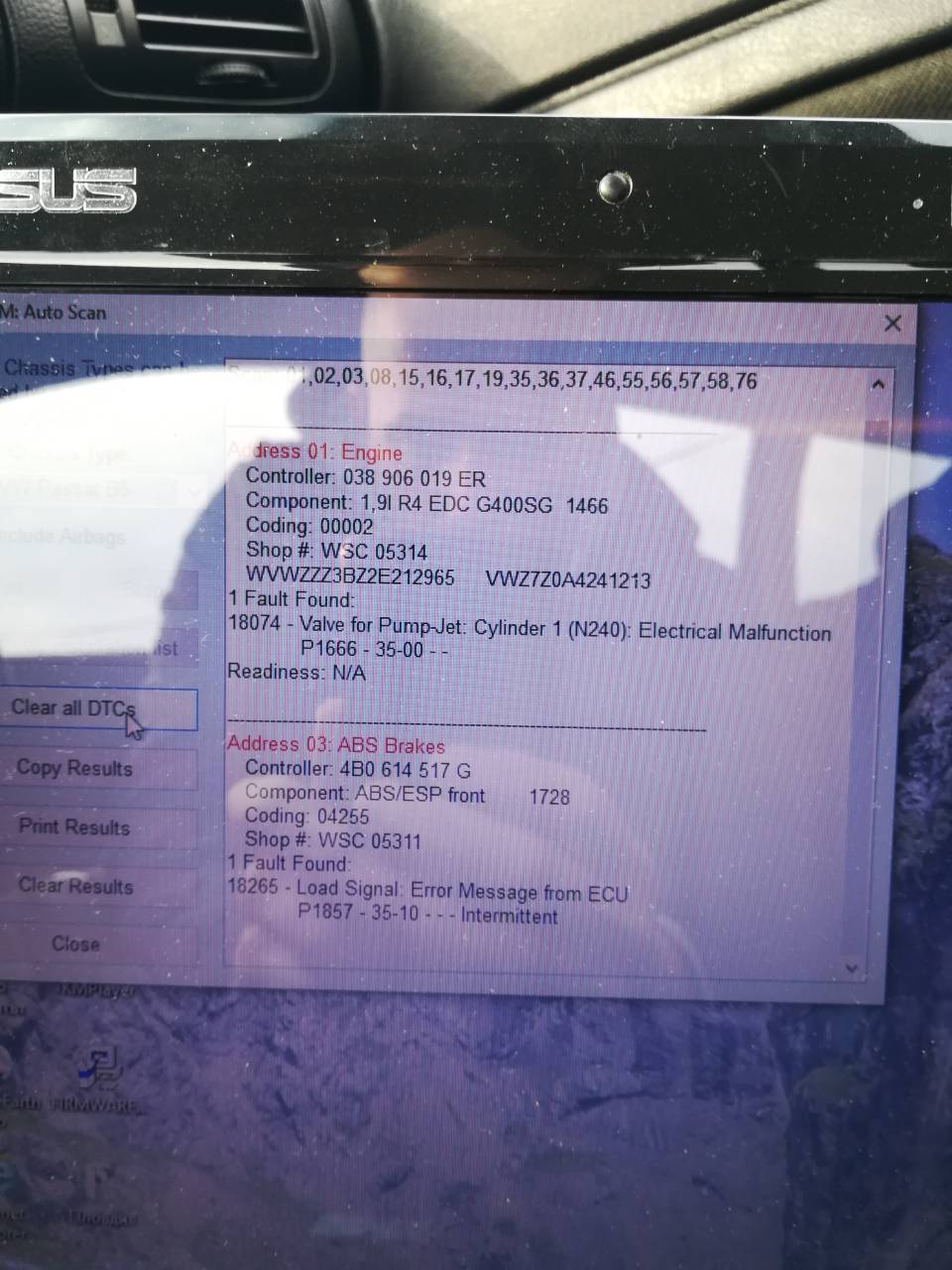 Та ... мотора е 1.9тди AWX Пасат 5.5 131к.с. Проблема дойде скоро след обслужване- когато мотора е студен между 1400 и 2000об./мин. започва осезаемо да придърпва.Случвало се е един или два пъти след здраво разклащане на двигателя от въпросното придърпване да ми светне лампата на ESP и направо ми изключва единия цилиндър - това го отдавам на хлабава букса на дюзата.След като загася колата и пак стартирам лампата си загасва и мотора започва да си работи нормално.При студен старт ако имам време и преди това я оставя да поработи на място 5-10мин. и потегля, тогава няма проблем също и след това мотора си работи чудесно. Проблема е единствено на студен мотор и то между 1400-2000об. Майстора ми каза, "най-вероятно температурен датчик" , но след закачане на vag-com единствената грешка, която ми изкарва е за проблема с дюзата , който е отчела при изключването ѝ. Докато работи на място, на студено, чувам някакво цъкане от към релетата...Това е всичко за което се сещам. Някой ако може да даде насоки и съвети къде да търся проблема, ще съм много благодарен.