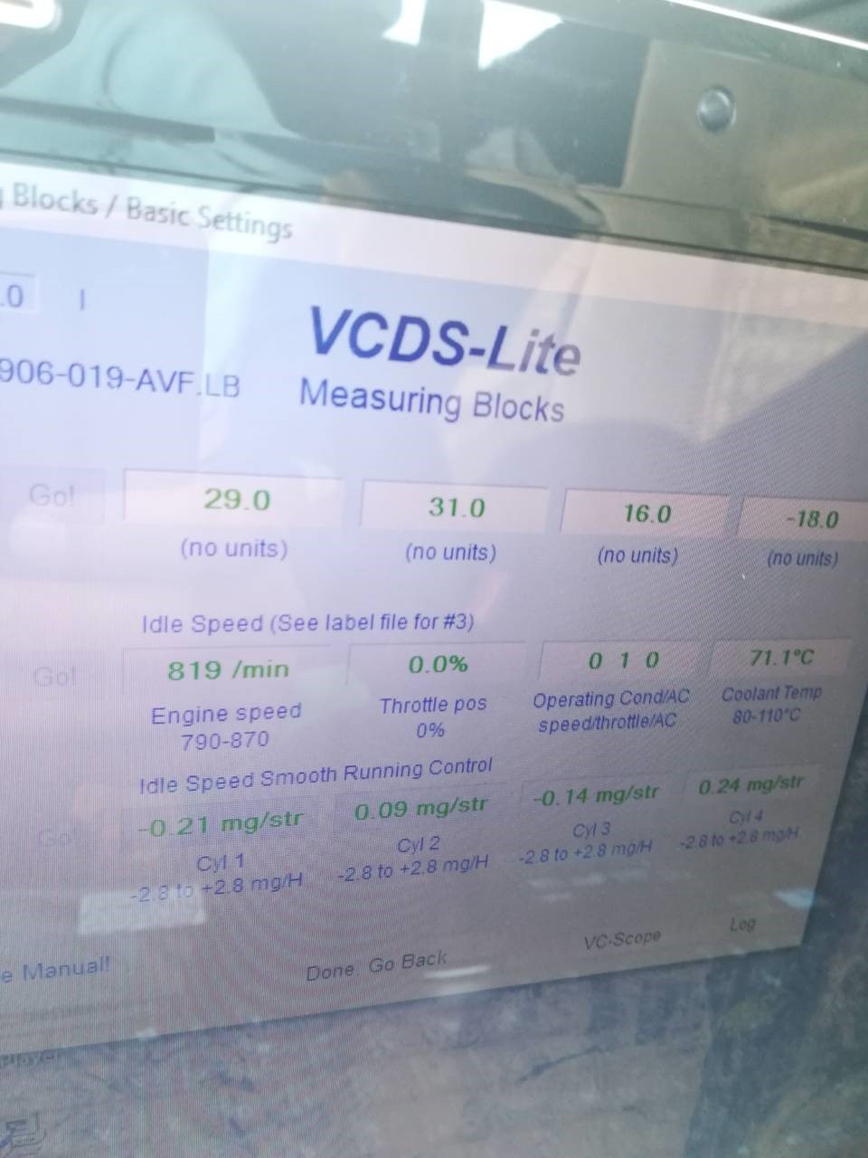 Нямаш проблем при стойностите,не са перфектни, но нищо за притеснение, в норми са.На празен ход.