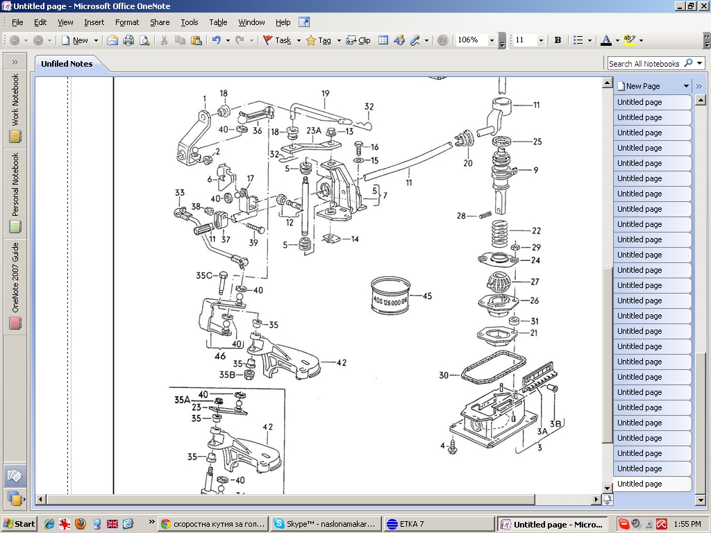 Извинявай, че пиша в темата на колегата... Моля те, премести малко схемата, за да се вижда кои точно са позиции 36 и 46 - на мен ми предстои смяна на скоростите и искам да видя аджеба кои са тия лостове, дето участват в превключването и зарад тях понякога напъвам хамалски, докато влезе...stefan4o написа:А разликите са в следните два компонента: