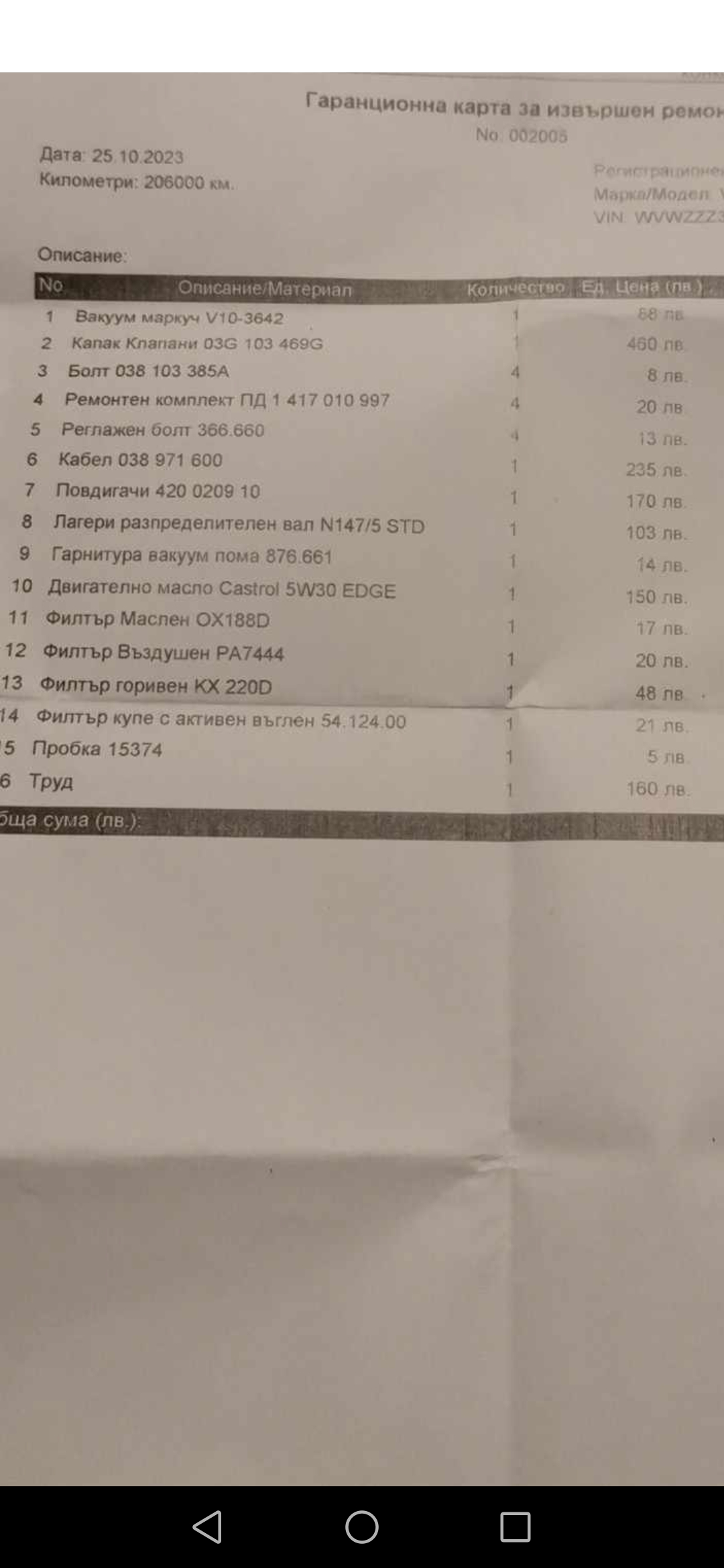 Според сниманата бележка са му поставили оригинален капак, освен само така да са написали а да са монтирали Вайко примерно или някой друг китаец. Колегата преди да го сменява да огледа за оригинални номера по капака и щампи на фв, защото ако са поставили оригинален капак няма смисъл от стария, освен всичко друго старите капаци се кривят по ъглите с годините и дори и с нови гарнитури пак протичат заради липсата на болтове в ъглите