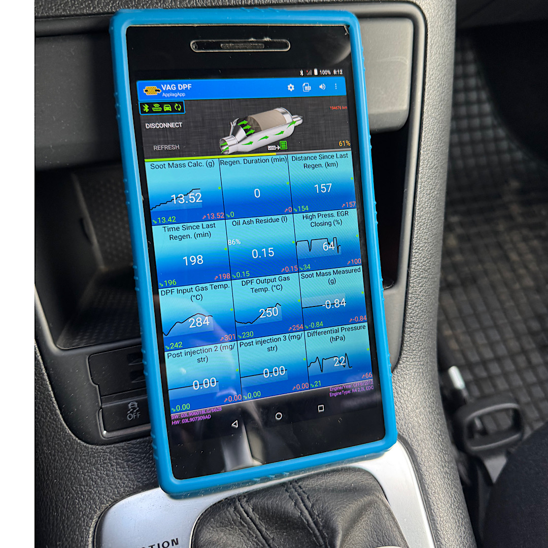 Напоследък ми прави впечатление, че Тигуанчето 2.0TDi CFFB (194к км) започна да прави много чести регенерации. В повечето случай това се случва в интервала между 170-220 км като колата се кара ежедневно по 80км по маршрута Надежда-Младост 4 (тангентата/Казичене), което за мен си почти извънградско. Преди 2000км върнахме софтуера от версия 9978- дизелгейт към 6628 преди гейта с цел по-рядко да прави регенерации, но сякаш ефекта е обратен (не се наблюдава промяна на нивото на маслото). Прилагам стойности на ДПФ-а.