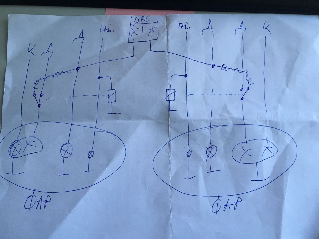 Та предложението ми в предния пост е с реле с нормално отворен контакт да се прекъсва/управлява плюса към дългите на крушката Н4.Така с монтиран ДРЛ ще светят само вътрешните секции на фаровете/на въшните секции няма да има + към Н4,защото релето няма да е сработило/...Доколкото съм запознат с работата на ДРЛ-а,той се деактивира при вкл.на габарити или фарове от ключа за фаровете.Ако това е вярно,може от габарита да се вземе + за управление на релето и при включени светлини от ключа релето да сработва и тогава към дългите на външната секция ще има + и фаровете ще работят нормално/къси-външната секция и на дълги-двете секции/.Монтажа на релетата/по едно на фар/може да се направи в самия фар и да не се реже инсталацията на колата.