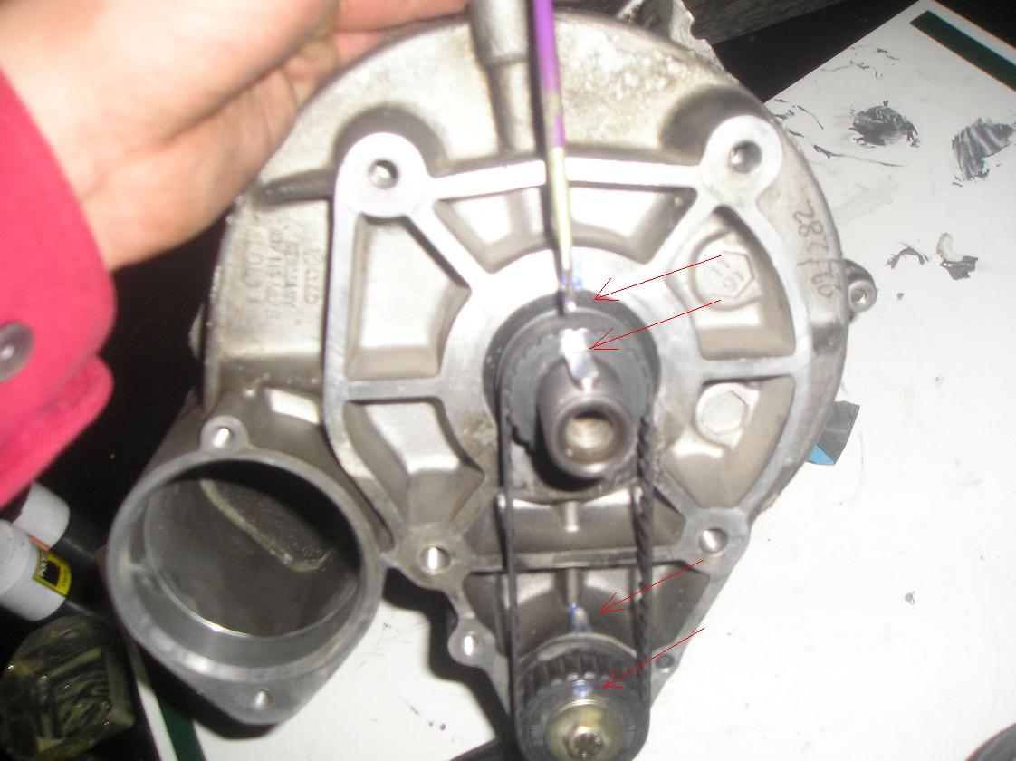 Компресора има 2 вала малък и голям които са синхронизирани посредством малкия ремък,ако той се скъса спиралите на компресора които минават на много малко разстояние една от друга се срещат и след което компресора става само за боклука. Ето защо двата вала си имат белези по които се слага ремъка в противен случай се получава посрещане на стените на компресора и като се има предвид ,че се въртят с около 10 000об/мин познай какво става