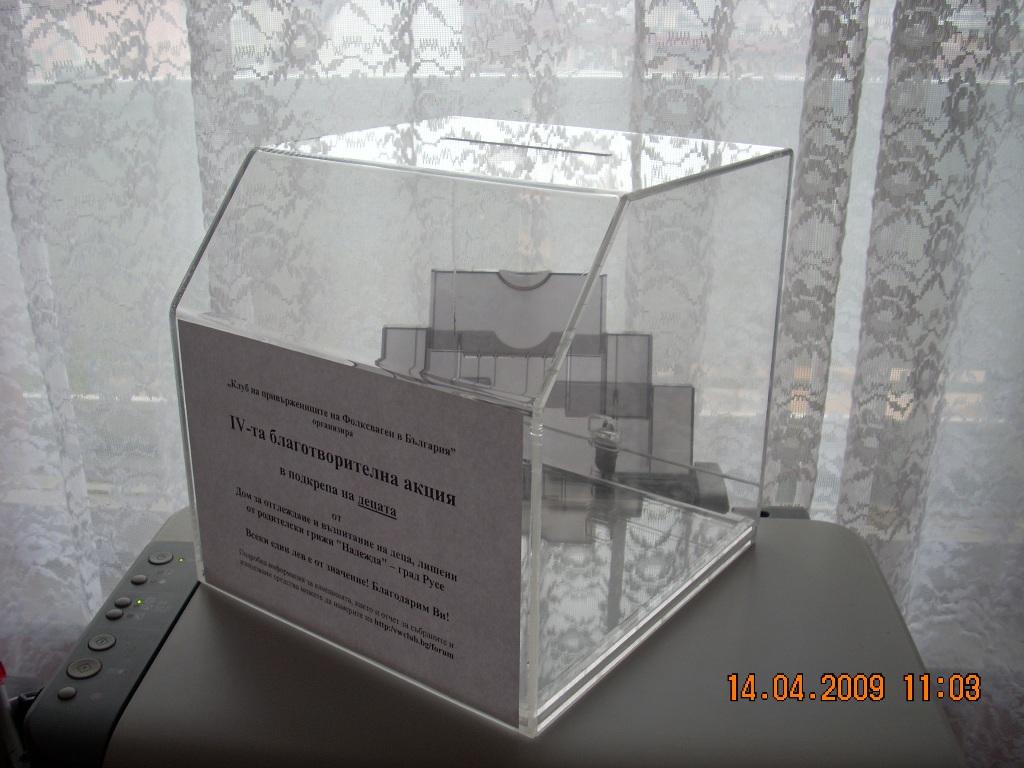 Все още не мога да намеря подходяща плексигласова кутия за целта, но ще се постарая да не се изложим.