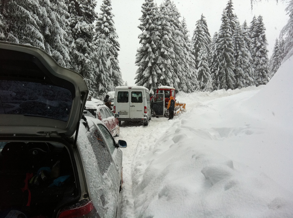 Някъде по средата на пътя в задръстването се разбра, че тока е спрял горе и лифтовете не работят.