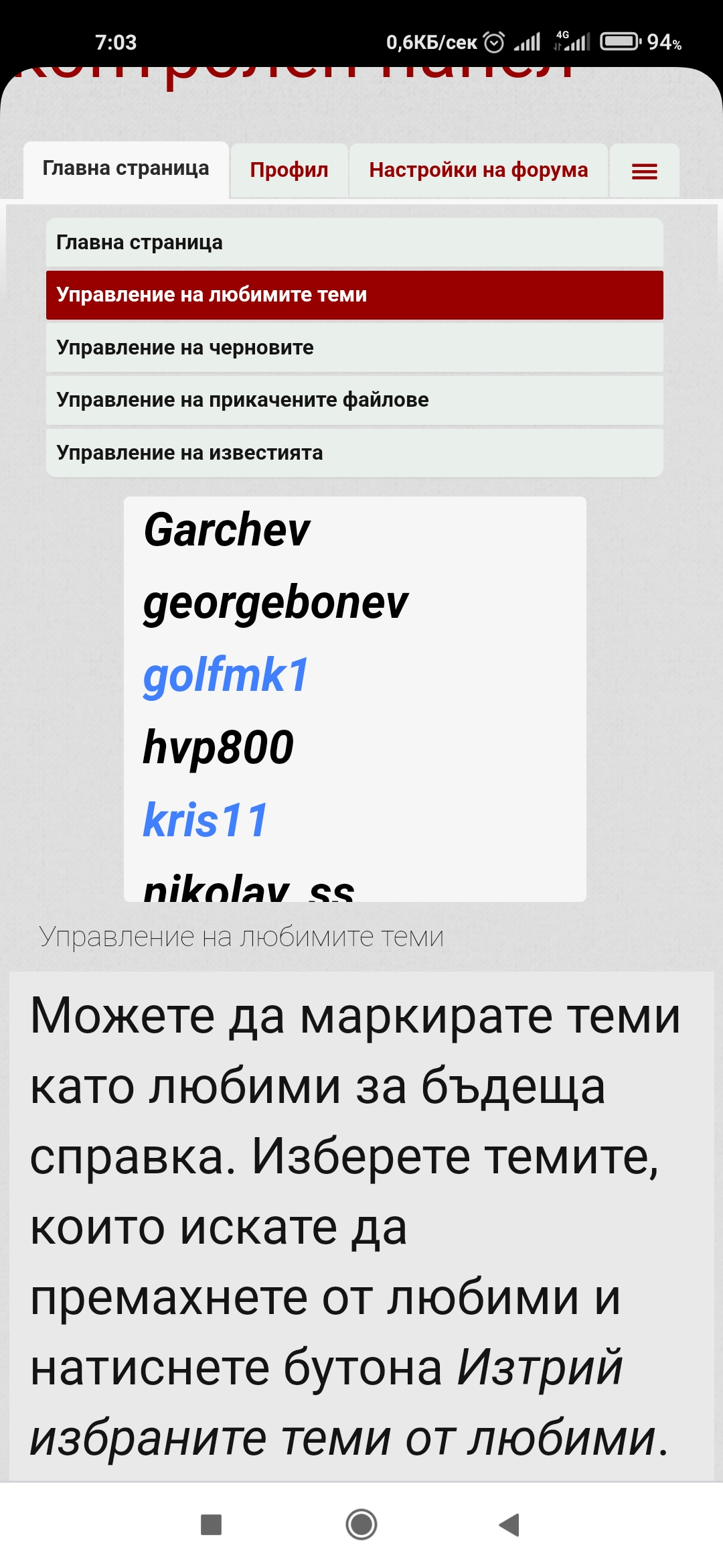k_garchev написа:Имам проблем с форума.Вписвам се с потребителско име и парола и като видя някоя тема в която съм писал(виж собствените си мнения) и ме изхвърля.Пробвах на три компютъра и е същото.