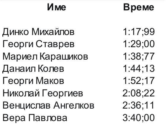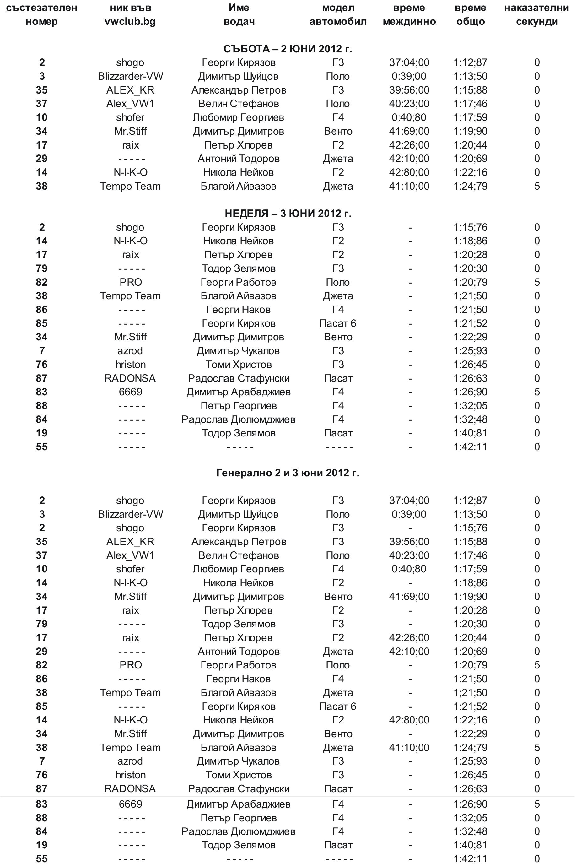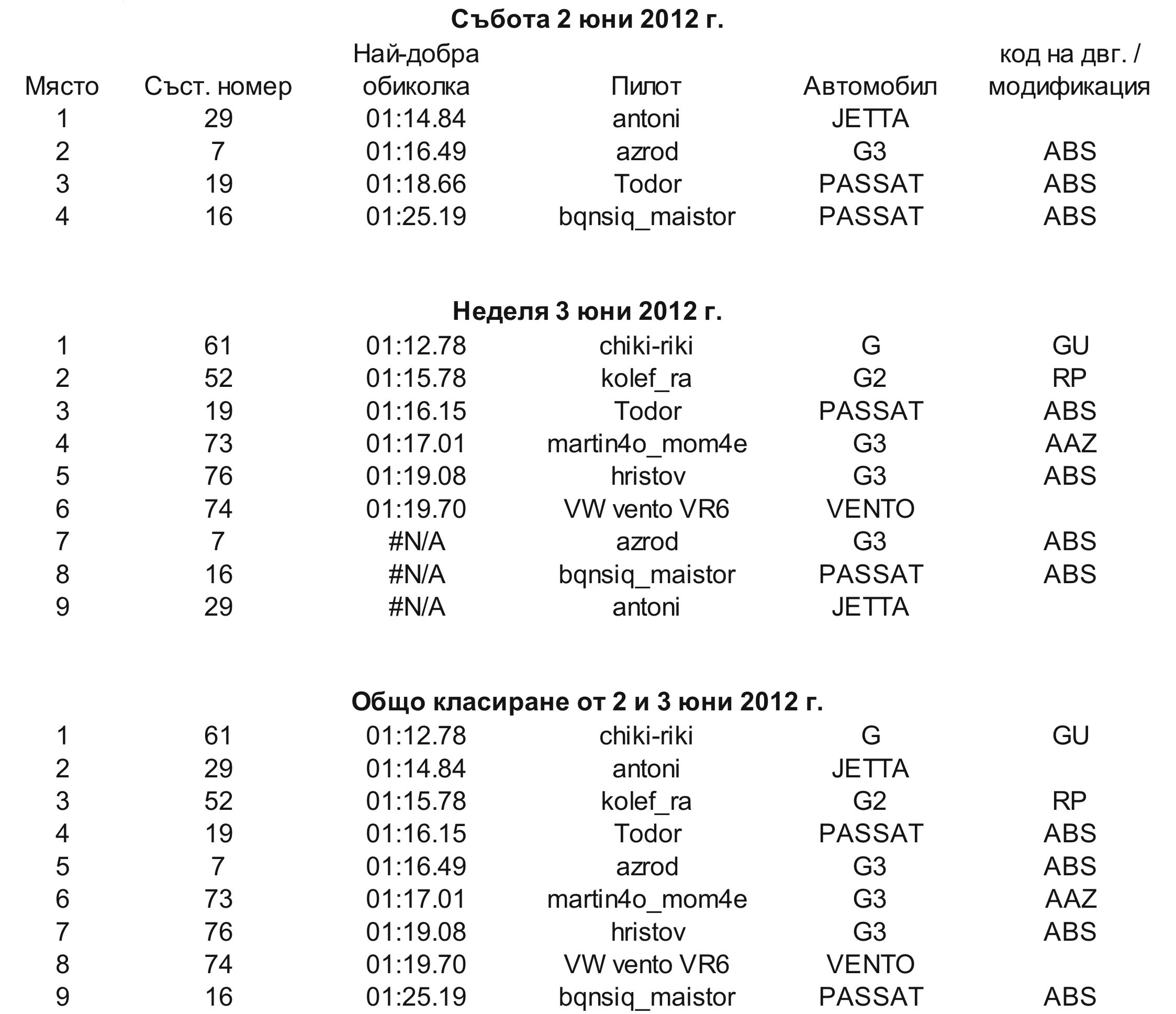 В неделя имаше объркване с времената в клас "Малък" заради не добавена сесия от страна на оператора, който работеше с времеизмервателната техника. След поправката и нанасяне на пропусната сесия, 4 ката се измени. Извинявам се за което, въпреки че вината не е наша. След поправката колегата, който кара с теб, отказа да повтори и отстъпи мястото си, друг колега не се яви, мисля поради технически проблем.