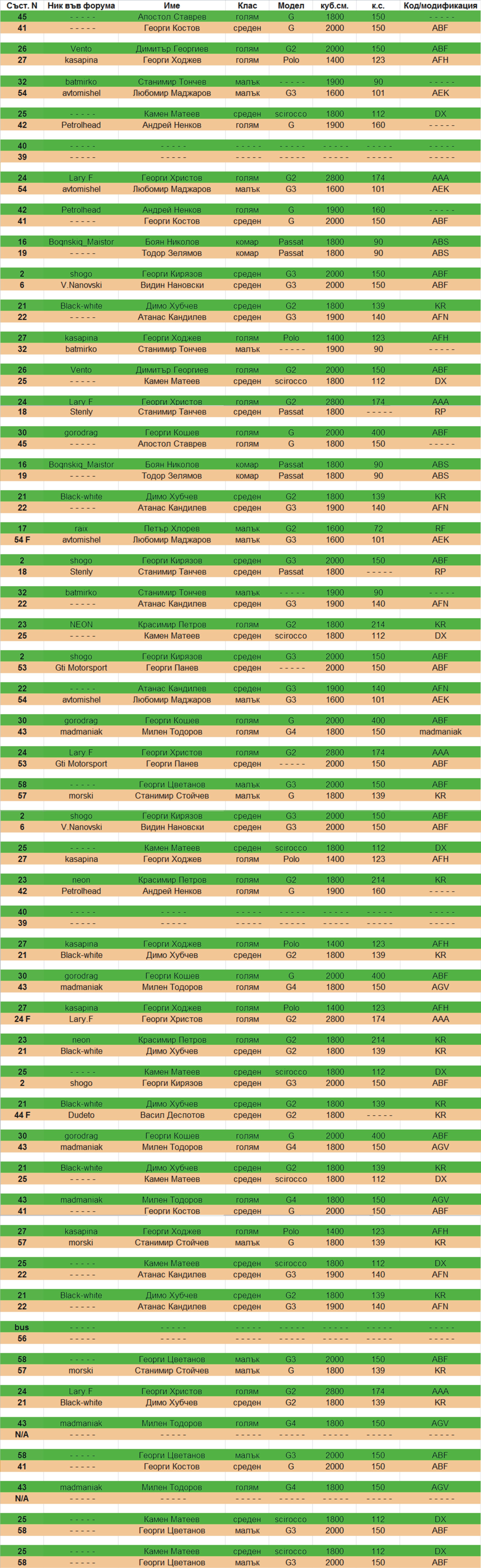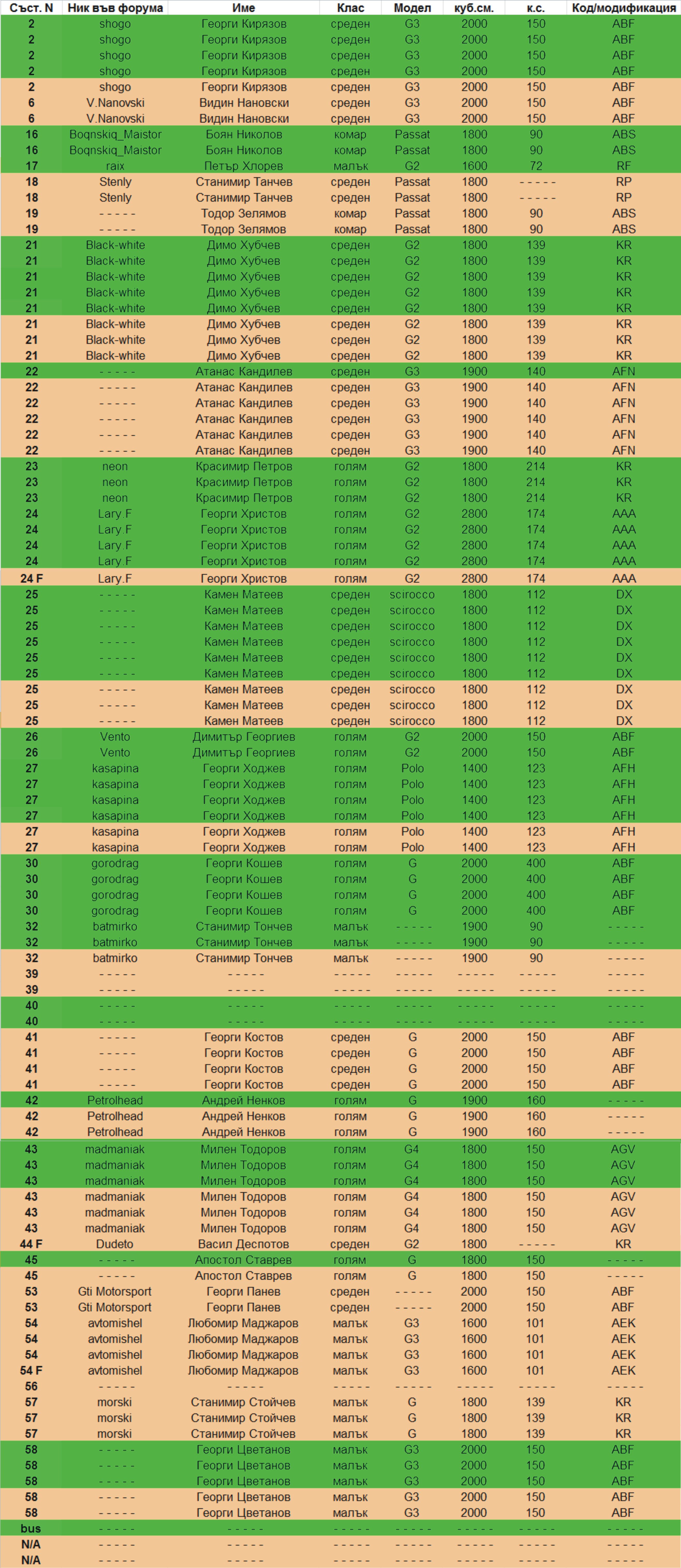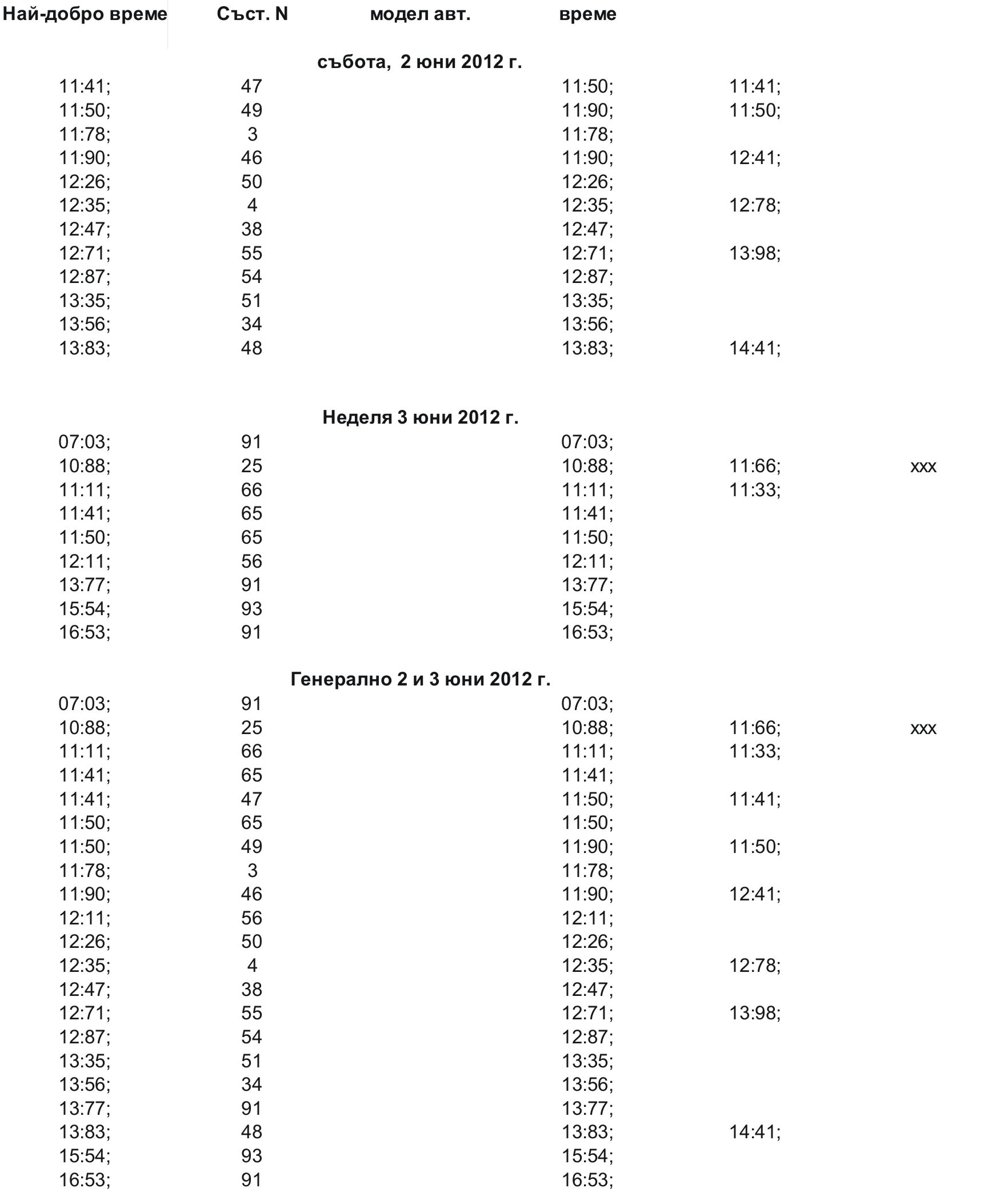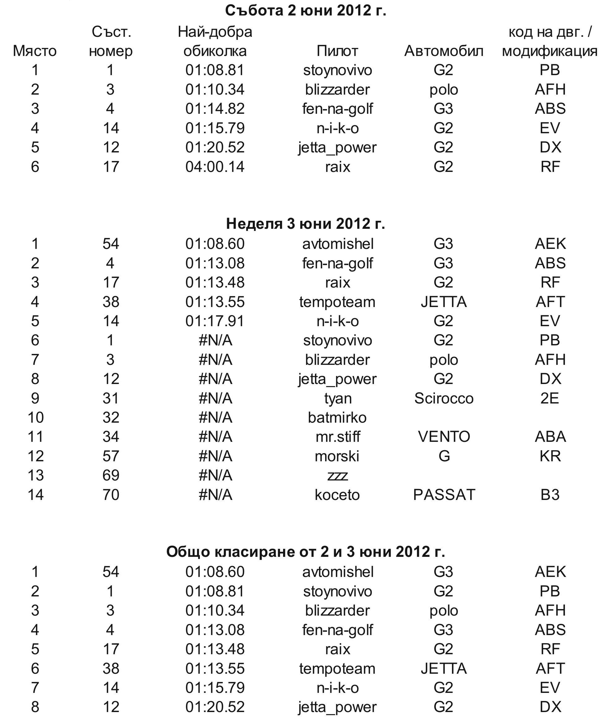 Ето и таблиците с всяка от сесиите, която ми предоставиха от Писта "Дракон"
