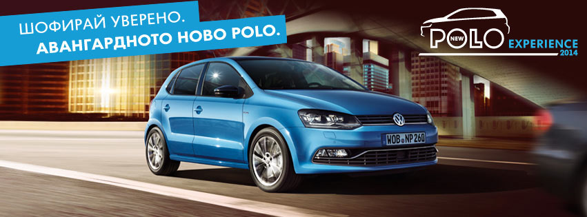 Авангардното ново Polo е вече тук. В рамките на националното роудшоу Polo Experience 2014 ще имате възможност лично да се убедите в неговите предимства. Серийните старт-стоп система, мултиколизионна спирачка и мултимедия от най-ново поколение са само част от нововъведенията при модела.