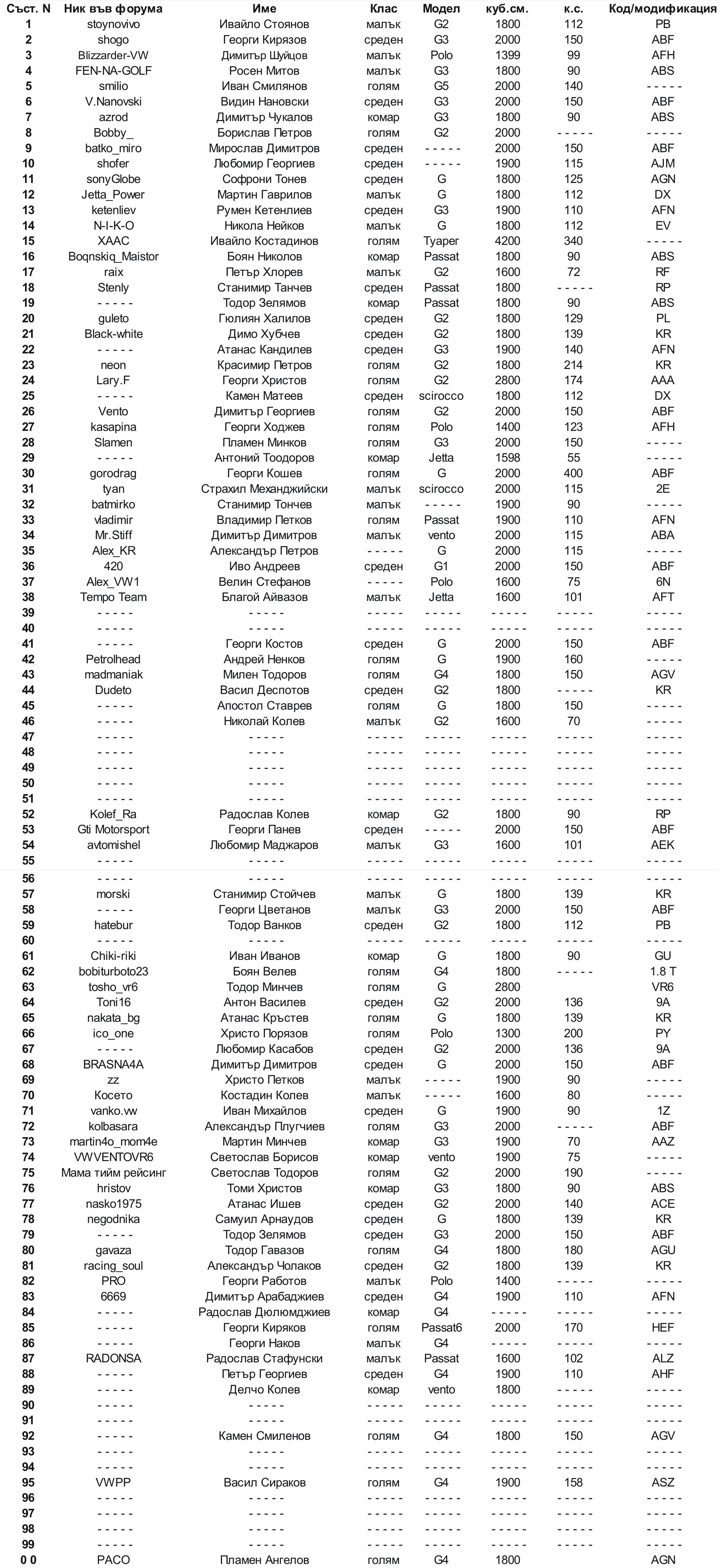 - Автомобил: Golf 2 KR ITB + Passat 7