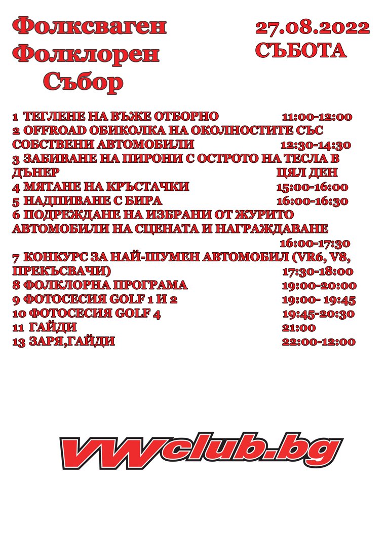 Клуб на привържениците на Фолксваген в България има честта да ви покани на 11-тия пореден Фолксваген фолклорен събор "Узана".
