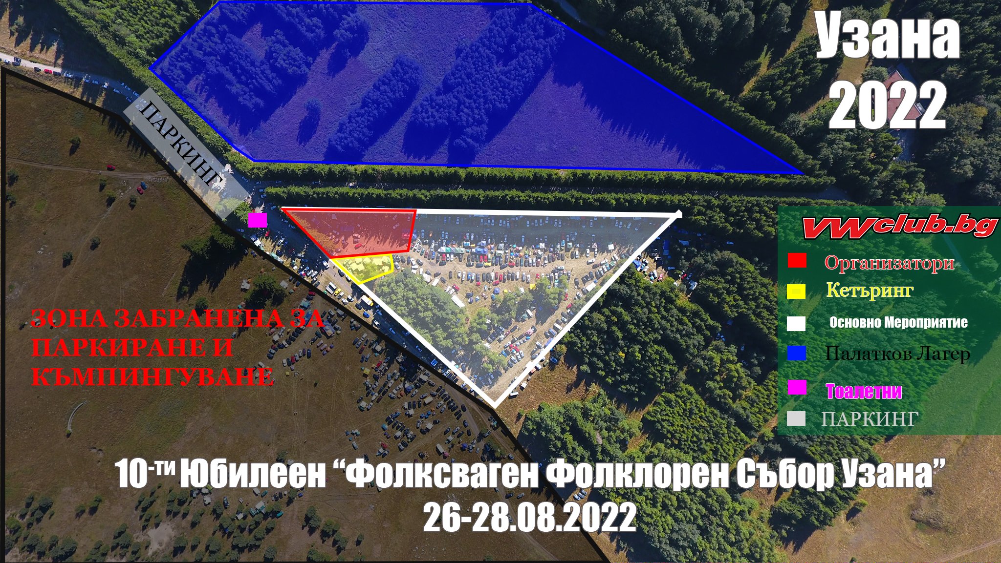 За сметка на това ще бъде отворена за ползване поляната от дясно на асфалтовия път. Като организатори НЕ носим отговорност за неспазване на правилата, а всеки понася сам евентуално наложени санкции за това.