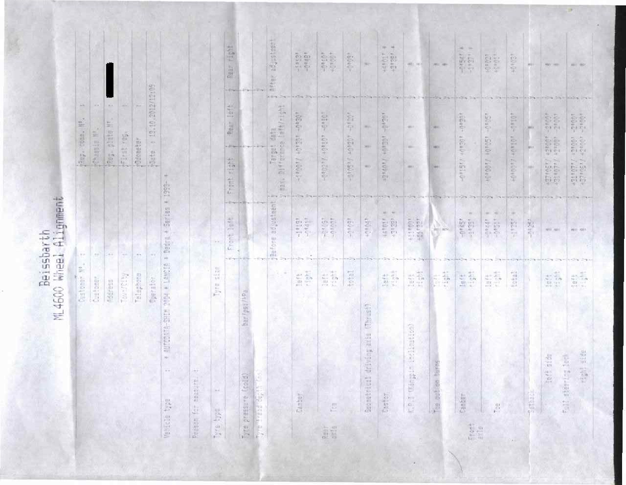 причината за реглажа беше, че колата върви леко надясно при изправен волан, което си остава и до момента. прилагам и разпечатка от реглажа. ще съм благодарен за всякакви коментари и съвети