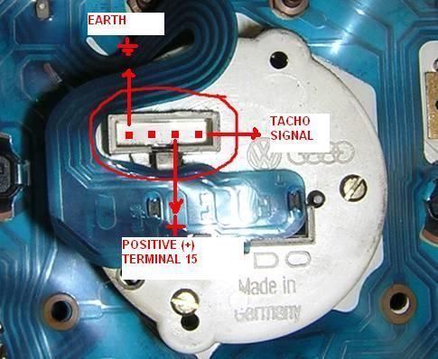 както се вижда KL-1 -- tachometer е червоно/черен кабел е правилно свързан . Колега погледни тази тема в нея се говори ,че пин7 от комутатора е сигнала за оборотомера , при теб липсва кабел , може да наденеш този червено черния там и да пробваш , но се говори , че било за дигитално табло или нещо такова , другият вариянт също е посочен в темата и ако всичко ти е наред по таблото за проба срежи този червено /черен кабел и го прикачи на бубината както е показано на снимката смятам ,че ще тръгне. http://www.vwclub.bg/forum/viewtopic.php?f=5&t=132478