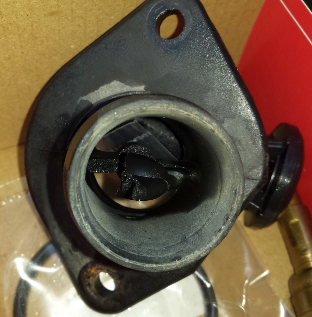 След разглобяването се оказа че държача/ фланеца който държи термостата се пръснал и самия термостат се бе разглобил на съставни части, прилагам снимки: