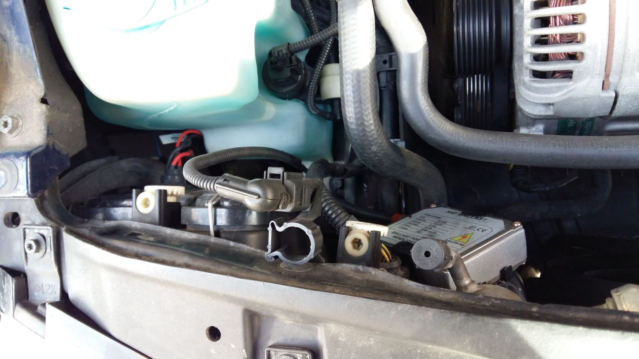 Има и нещо друго...... тази букса се намира точно зад левия фар и жицата и е прекалено къса, за да стига до бравата на капака.