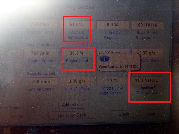 Това, което ми прави впечатление е, че натоварването на мотора е много високо (малко над горната граница) при студен мотор, после спада.