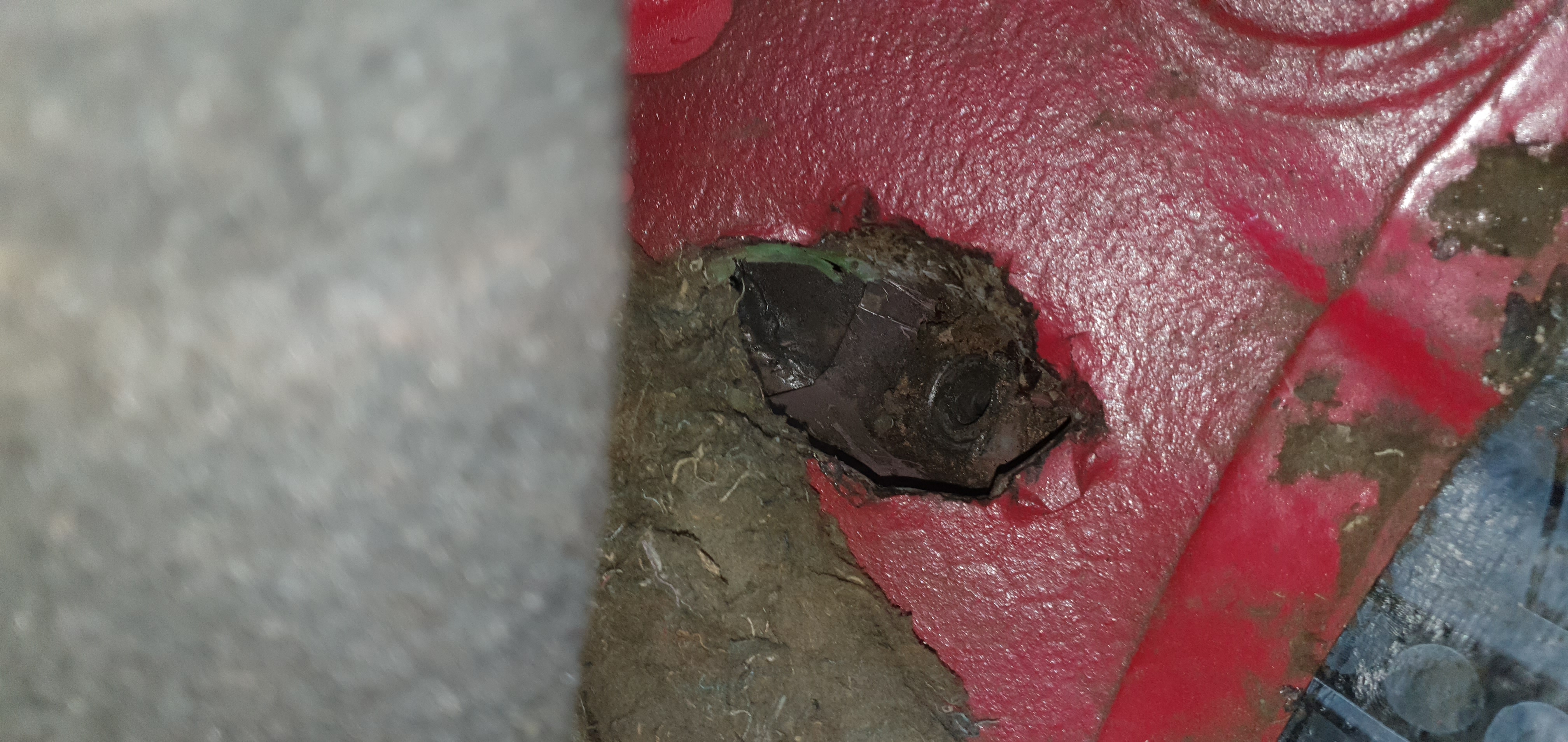 И,о чудо...гайката която е заварена вътре и превърта понеже е скъсала заварката е обла. :mhihi