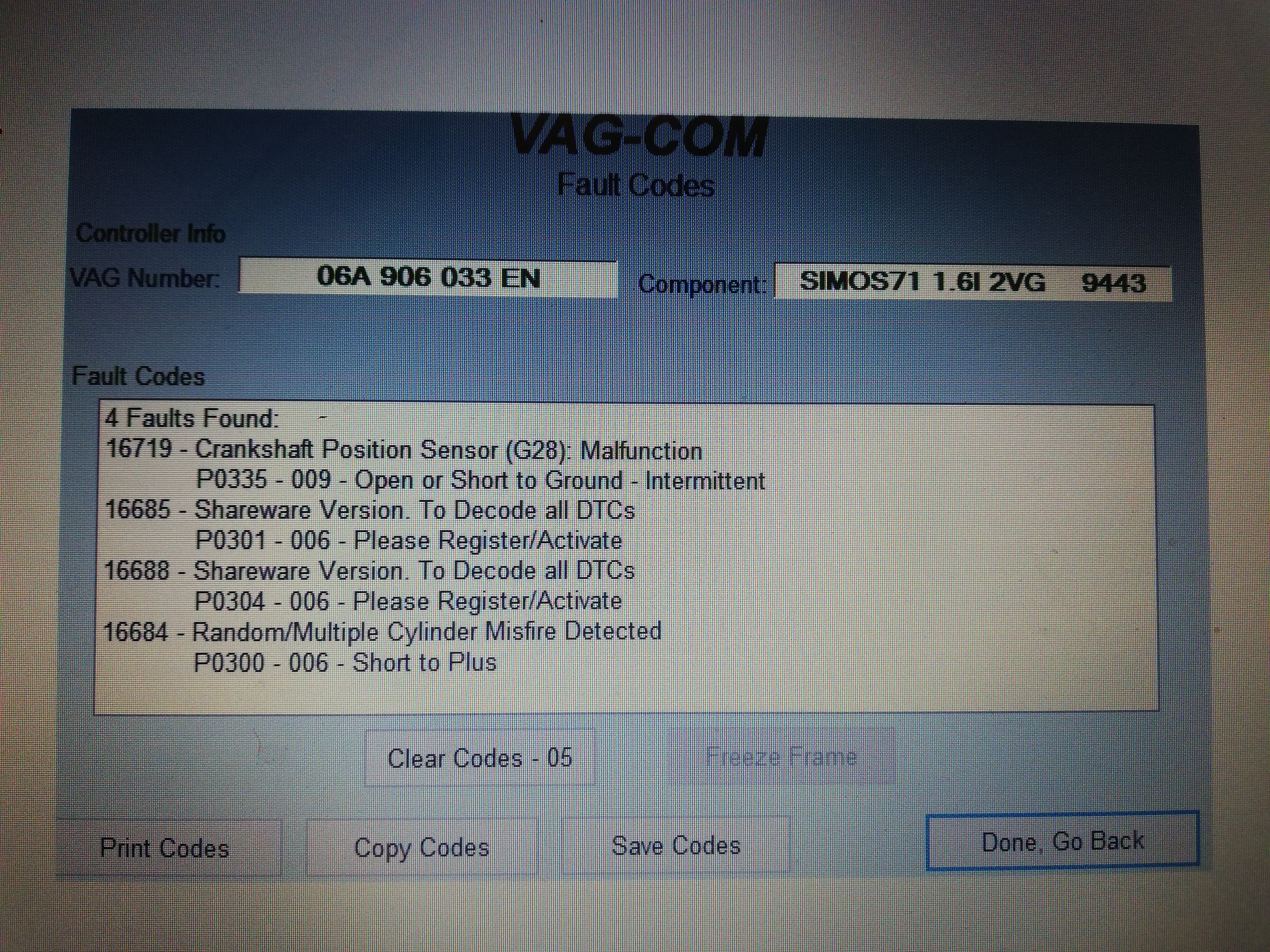 Re: Голф 5, 1.6 - Дава грешка 16719 - Датчик Колянов Вал и прекъсва.