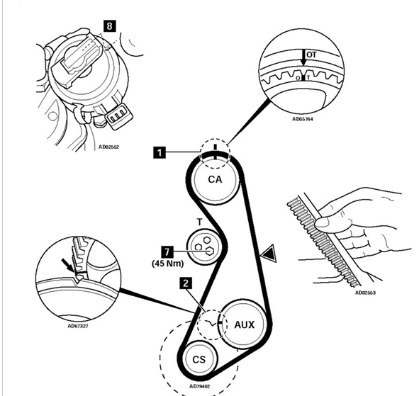 Като се нагласят белезите и се постави ремъкът е хубаво някой да позавърти малко мотора (добре е да се извадят свещите, за да иска по-малко усилие) на ръка преди да се запали колата.