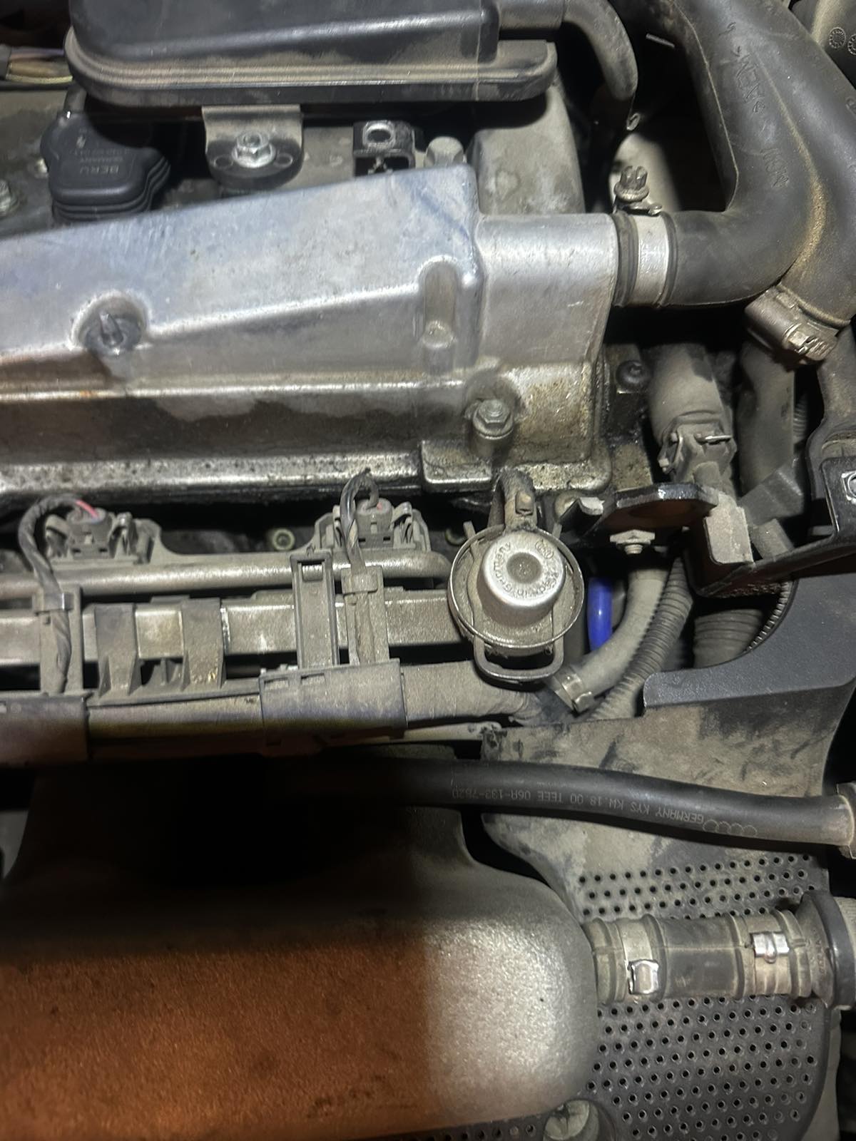Имам 1.8т (АУМ) в А3. Наскоро сменях свещи (бобините са що годе нови). Свещите бяха много стари, но реално не правеше никакви проблеми, но реших да ги сменя. Казах на майстора да огледа и вакумите, защото знаех че в картерната вентилация има теч (чуваше се да съска). Момчето каза, че е сменил няколко малки маркучета (едното се вижда на снимката "синьото").
