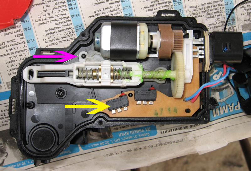 И моите съмнения бяха към някое микроключе в бравите на една от двете предни врати свързано с ключалките в положение на отключване. Действително се оказа нещо такова в бравата на шофьорската врата. Явно като съм я отварял и презапоявал напуканите спойки, в бързината не съм почистил флюса, който използвах. После в един момент бегло ми мина през ума този пропуск, но вече бях монтирал бравата във вратата. Сега отново като я отворих, имаше някакъв окис на спойките на ключето и утечка от няколко мегаома, но след ново презапояване и почистване със спирт на спойките утечката изчезна, изчезна и проблемът. Явно електрониката следяща тези ключета е с доста високоомен вход