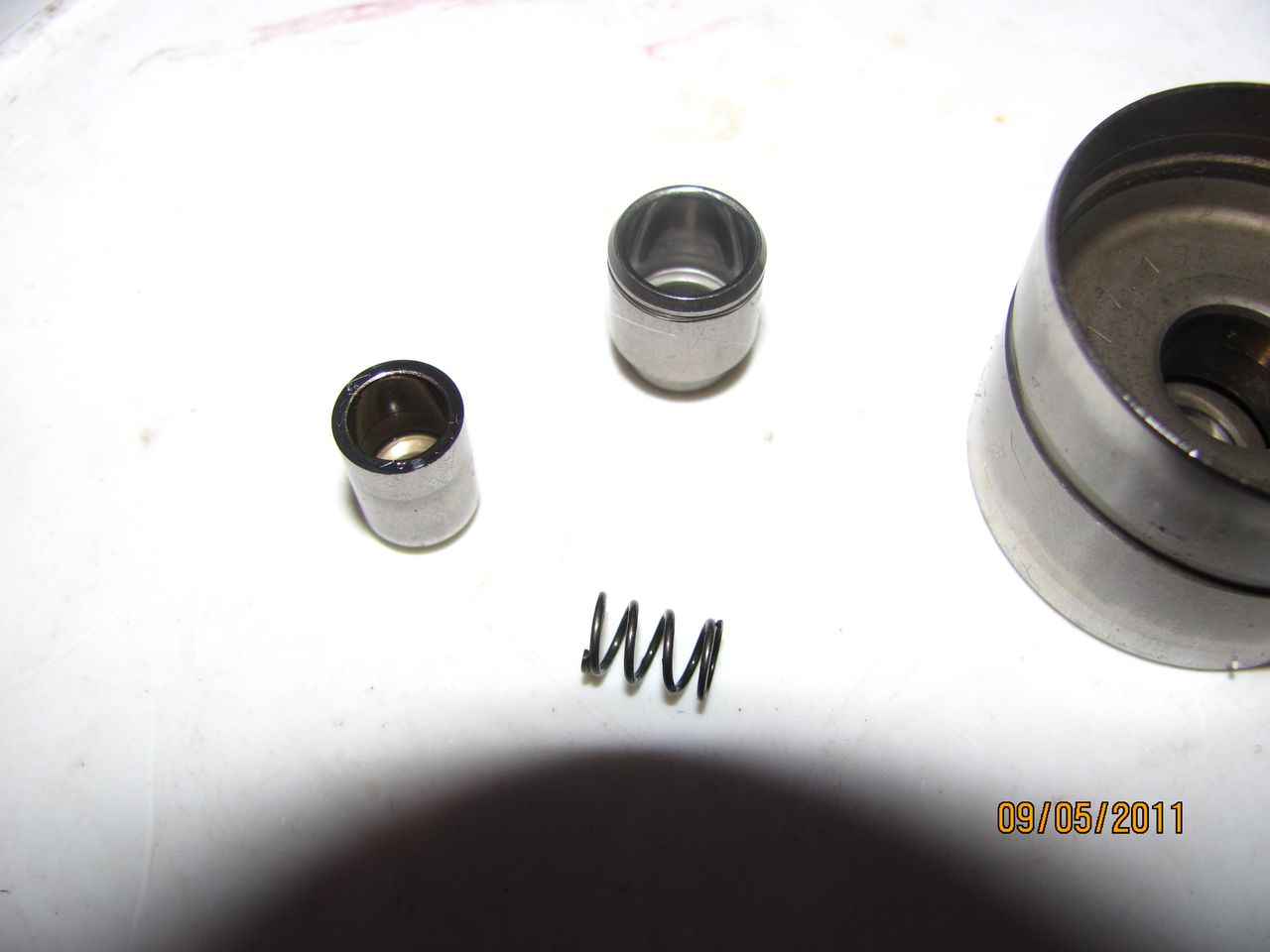 ако някой е решил да чисти своите повдигачи ето малко снимки. Вземате повдигача и започвате яко блъскане с буталцето надолу в дървена повърхност например за да не го нараните. След няколко удара се разглобява. Разглабяме самото буталце и забърсвате всички мизерии от него. После го сглобявате отново и с натиск го вкарвате в тялото на повдигача. При натиск с пръста на сглобения вече повдигач трябва да се чува щракане в сгънато положение, което значи, че е почистен добре. Ето това е цялата философия, която коства един ден разглабяне на главата, един ден чистене на повдигачите и един ден сглабяне на всичко.