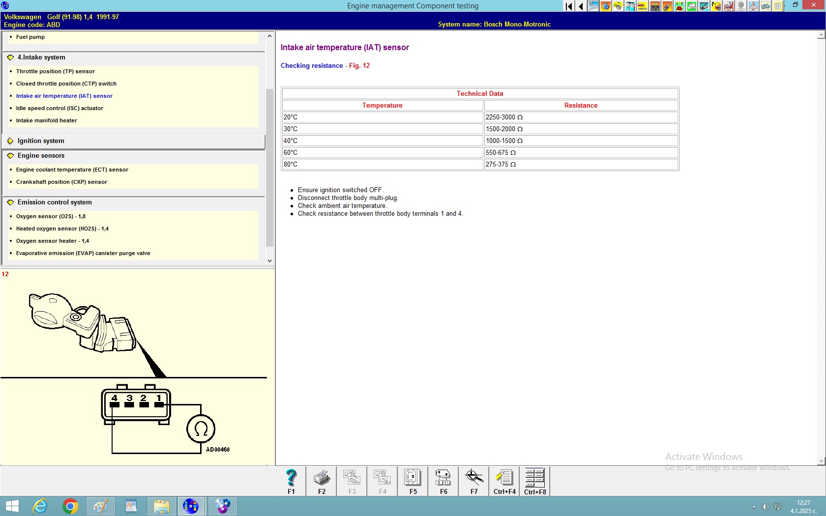 Другото за мерене е на стъпковото работи ли датчика на щока/tp swich май беше/, той реагира на пуснат педал. Въобще не бих се занимал с температурни датчици на този етап.