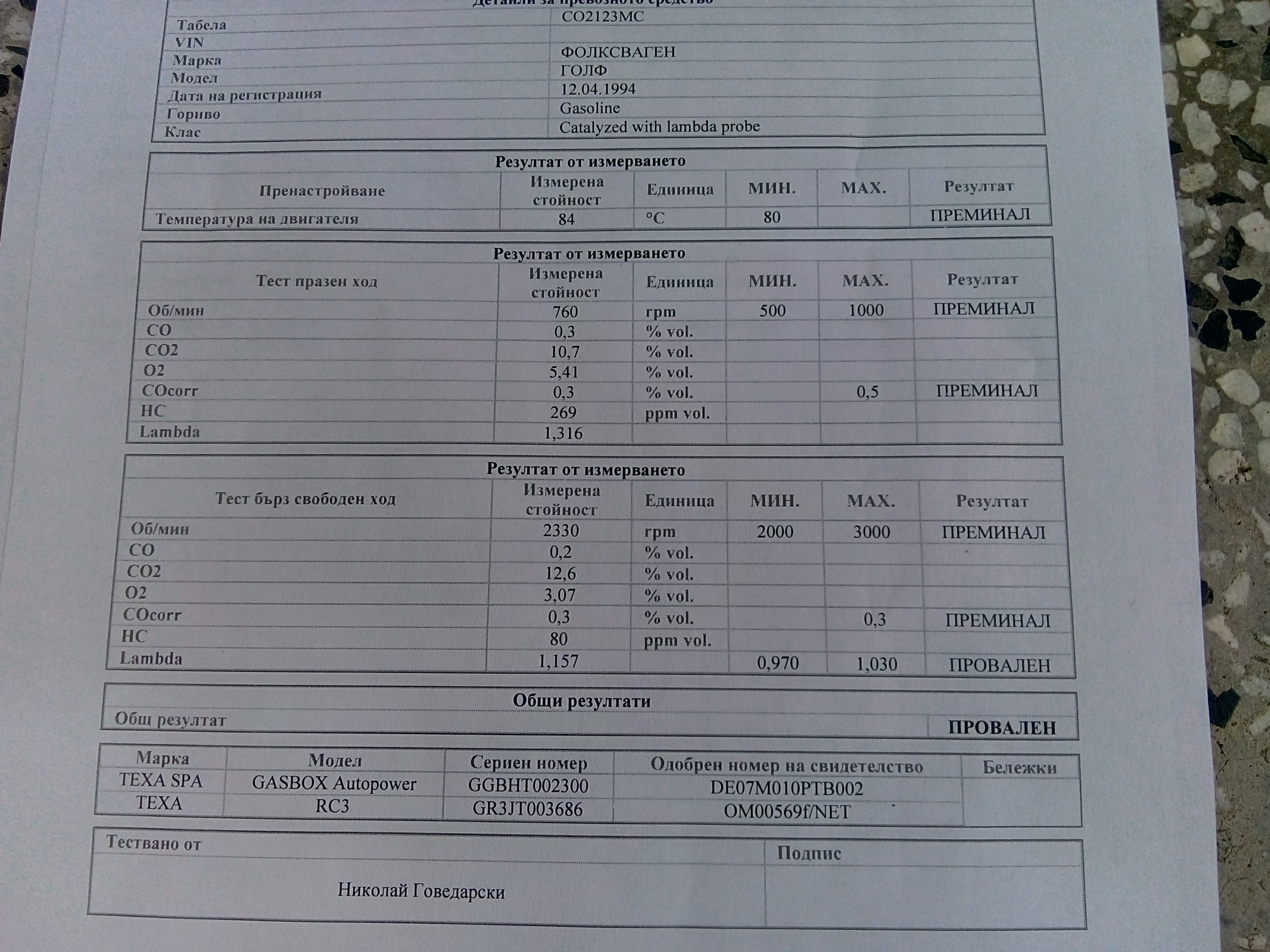 Ето разпечатка от газ анализатора. Моля за мнение.
