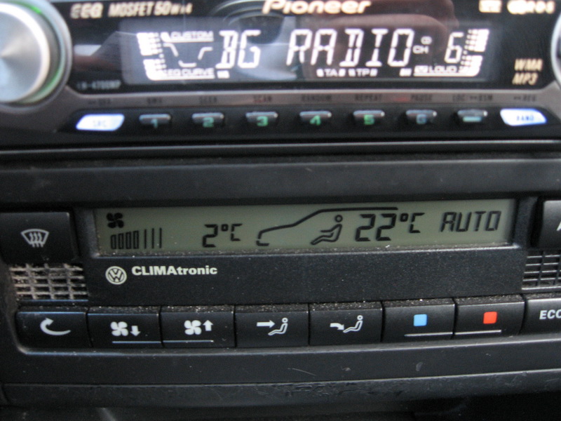 аз имам този "проблем", който всъшност не е голям откакто съм взел колата - 2,5г. - не винаги, но в повечето случаи го има. И проблема е в датчика с перката който се намира отляво на касетофона - под една решетчица - поне при диагностика този датчик дава грешка.