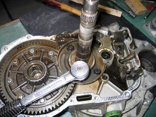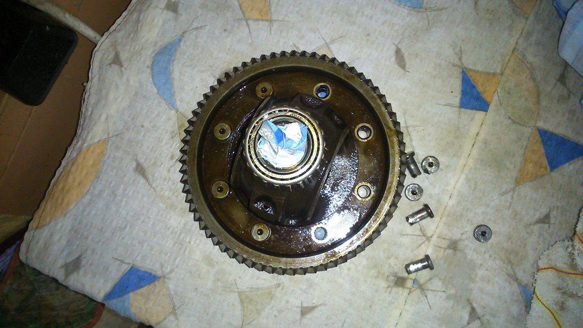 , но няма какво да се прави. Бях и при стругар, с който обсъдихме направата на тикива болтове, но се оказа че на струг не може да се оформят болтове с по-висока якост от 10.9, а тези "златни болтове" са с якост 12.9. Но както и да е вече са взети и поставени. И понеже днес бях при майстора, когато започваше да я събира кутията ми направи впечатление, че след като постави диференциала и това което го задвижва, като се върти с ръката, самия диференциал се върти трудно и чука, а като стегне четирите болта на въпросното желязо напълно блокира и не можеше да се върти на ръка.