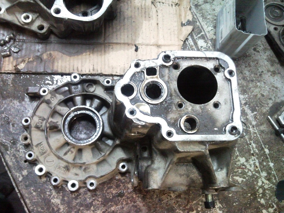 От мен малко снимки на проблема с нитовете на диференциала и устройството на кутия на Голф 4-1.6 2000г.За съжаление не намерих кода на кутията защото не знаех къде да го търся и не премерих диаметъра на нитовете. Иначе кутията е със зелена капачка а управлението на съединителя е с хидравлична помпа.