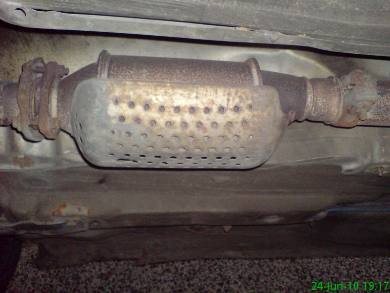 вчера пробвах да откача тръбите да видя дали там е проблема, но скъсах първия болт и се отказах... направих снимка на това дето е отдолу... сега остава да кажете имам ли катализатор или нямам.... когато купувах колата ми казаха че няма катализатор.... на ГТП ми казах че нямам катализатор и ми дадоха фалшива бележка 4е имам...