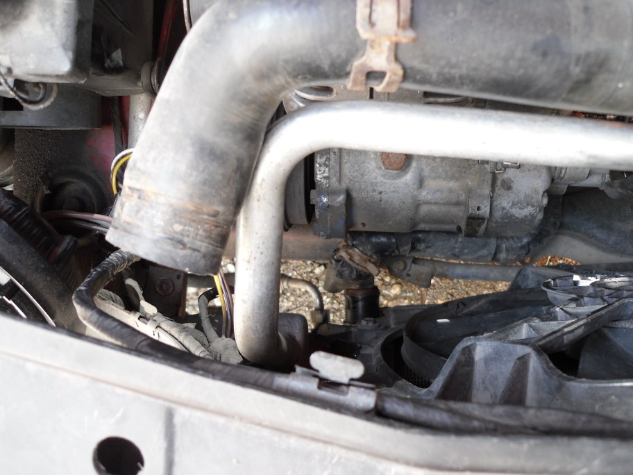 след като откачите филтър-дехидратора другото което трябва да направите за да отместите кондензатора е да резнете малко ъгълче от очиларката - ъгълчето долу от към пасажера където е маркуча към дехидратора
