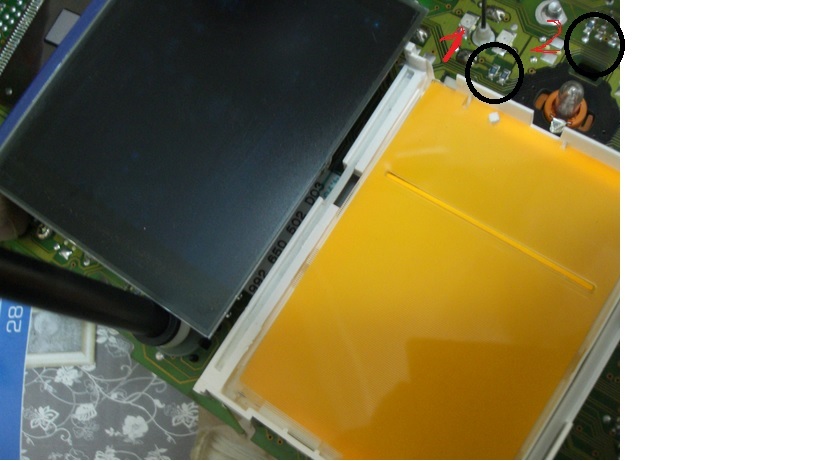 колеги,ето снимка на въпросните елементи,предполагам защото като допра пръст върху тях и дисплея започва да възвръша контраста си.двете черните са резистори а другото сякаш е кондензатор.някои ако знае кое да се смени и с какво да пише.всички ще сме му благодарни...