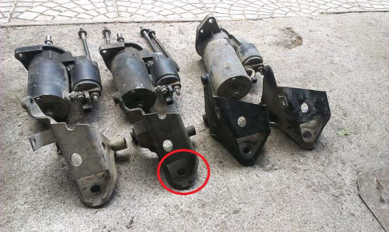 Колега или махаш лапата/преди това отвиваш болта за тампона и повдигаш леко мотора с крик/...но трябва да свалиш и стартера...Другият вариянт/само като идея-не съм го пробвал/-през прореза на лапата,заграден с червено на снимката,с подходящ като дължина шестограм нацелваш,ако може болта и го отвиваш...