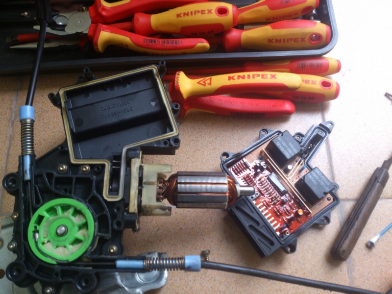 Колега оправих си джама по начина който си описал. Има един феритен пръстен който се беше отместил по оста на моторчето в посока зъбното колело. Наместих го на мястото му и му капнах малко лепило ( LOCTITE ), зачистих транзистора и пръстена от мърсотията и работата заспа. Подозирам че на повечето хора на които им насичат прозорците това е проблема.