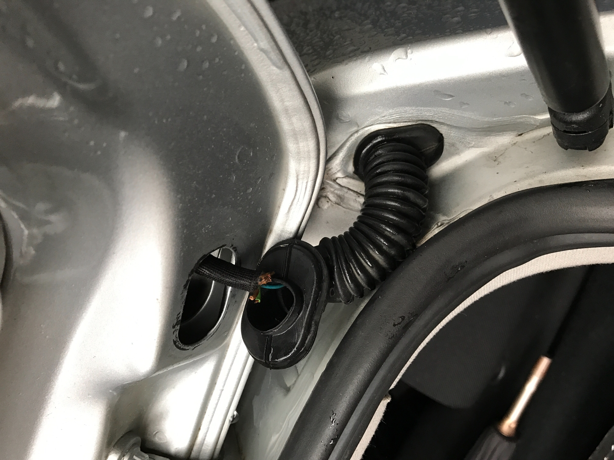 А проблема с централното се оказа скъсан кабел в гумения шлаух на вратата (десния).