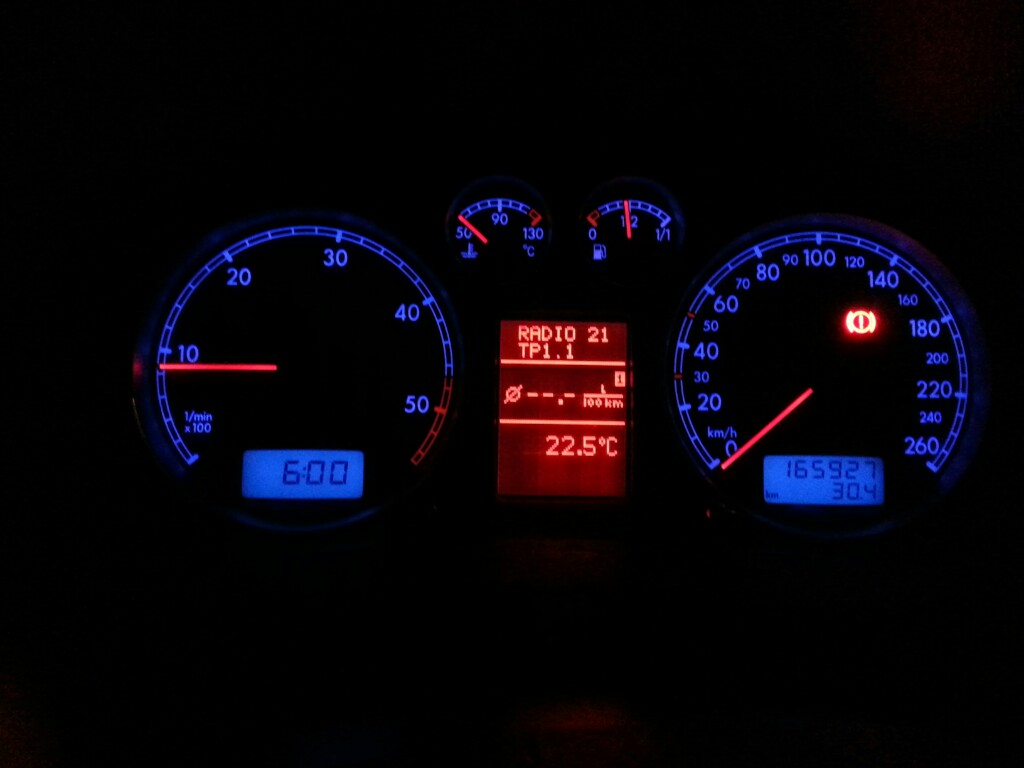 Колега мисля че бъркаш, дисплея се самоосветява и в зависимост от таблото - (колата) може да има различни цветове в един и същи дисплей. За Пасат е червен, а при Ауди А4 -99 е трицветен, същият. Яркостта се регулира от потенциометъра, но когато спреш подцветката на таблото (габарита), дисплея не изгасва, а продължава да свети и да се регулира.