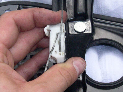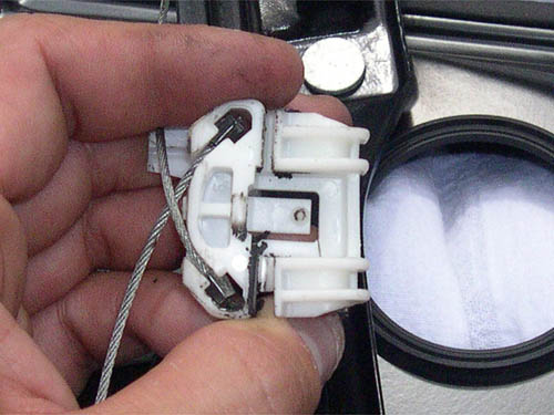 Относно механизма и монтажа: Металните водачи, който виждаш в на снимката от и-бей имат пластмасови плъзгачи, които са в контакт с всяка от релсите, намиращи се от другата страна на ламатината. Механиката е проста. Като го демонтираш ще ти стане ясно. Жилото не се омотава, а се допира по периферията на водача и се закотвя във всеки противоположен край посредством удебеленията на всеки край на жилото.