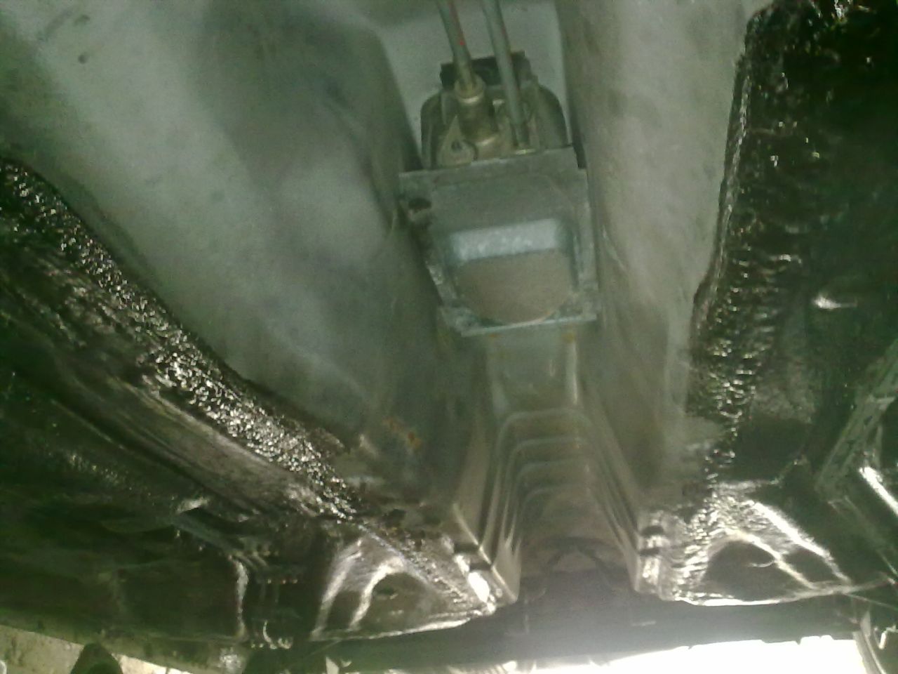 Може да сте забелязали разликата в снимките, но това е пак заради 2те отделни разглабяния. Като видях, че няма никакво предпазно покритие над ламарините реших да намажа с грунд и body 930. Като ги развиете може да свалите вече кутията и сега да развиете онези болтове на жилата